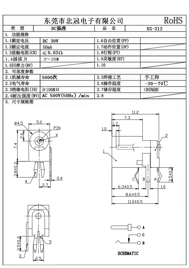 1. Rating : DC 30V 0.5A
