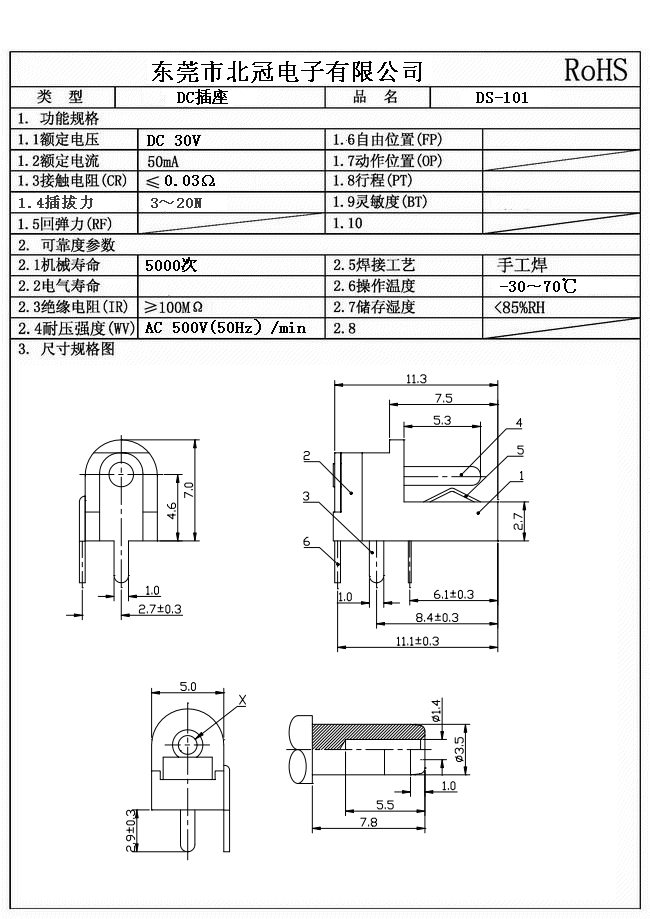 1. Rating : DC 30V 0.5A