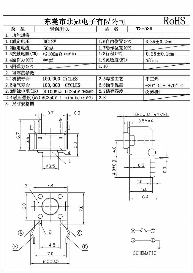 產品名稱:TS-038輕觸開關