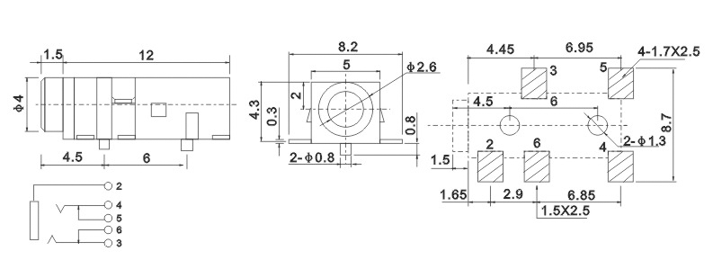 耳機插座技術參數: