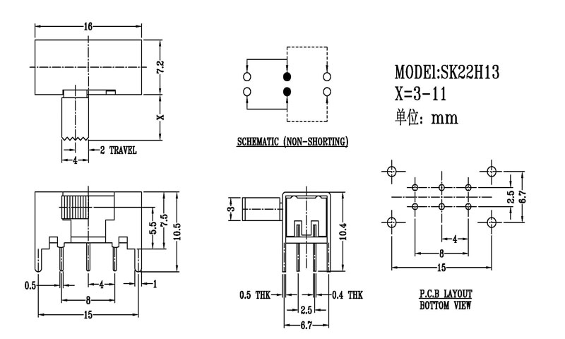 撥動開關(guān)主要技術(shù)參數(shù)/Slide Switch Main data
