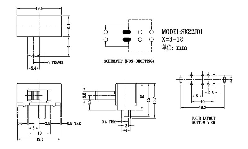 撥動開關(guān)主要技術(shù)參數(shù)/Slide Switch Main data
