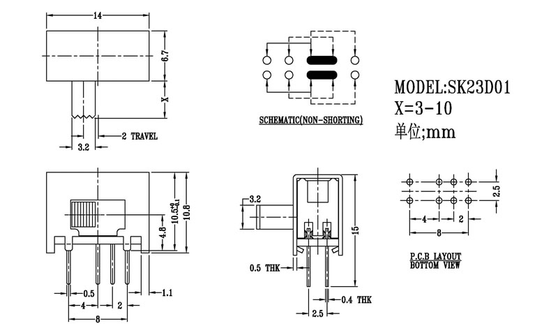 撥動開關主要技術參數/Slide Switch Main data