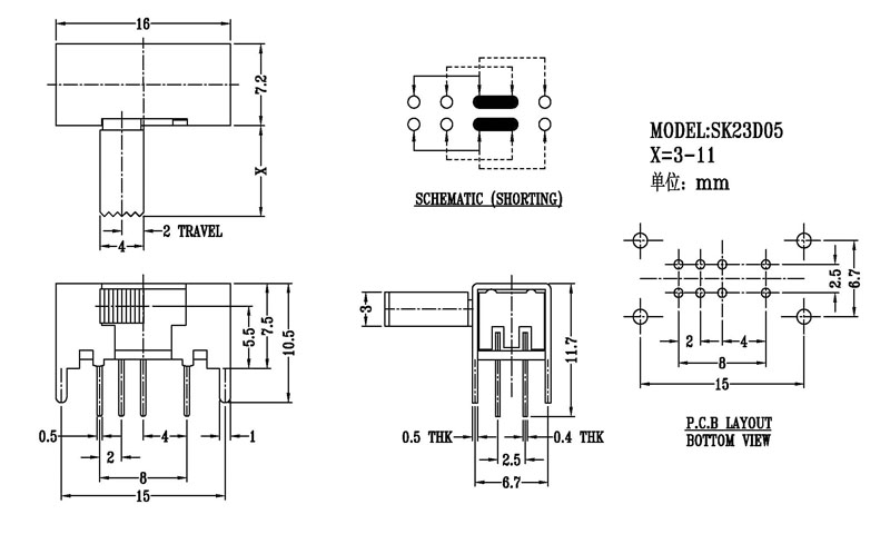 撥動開關主要技術參數(shù)/Slide Switch Main data