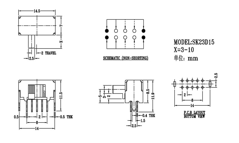 撥動開關主要技術參數/Slide Switch Main data