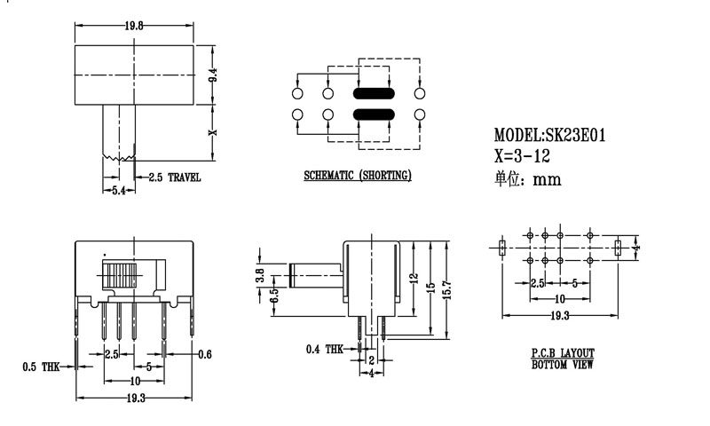 撥動開關主要技術參數/Slide Switch Main data