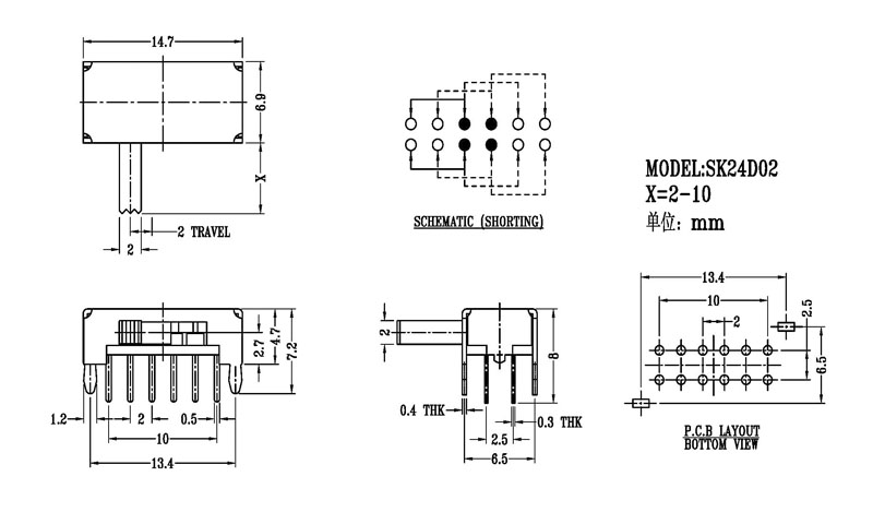 撥動(dòng)開關(guān)主要技術(shù)參數(shù)/Slide Switch Main data