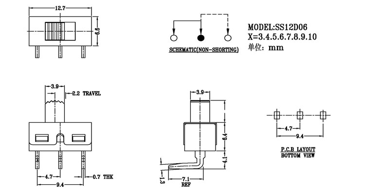 撥動開關主要技術參數(shù)/Slide Switch Main data