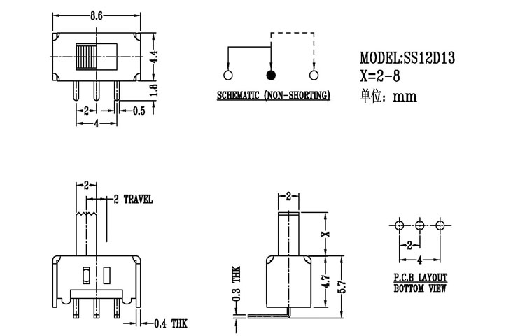 撥動開關(guān)主要技術(shù)參數(shù)/Slide Switch Main data