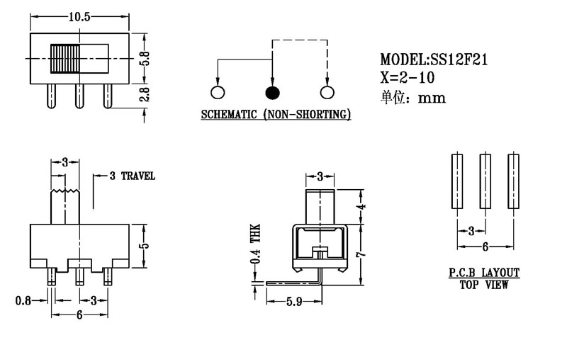 撥動開關主要技術參數/Slide Switch Main data