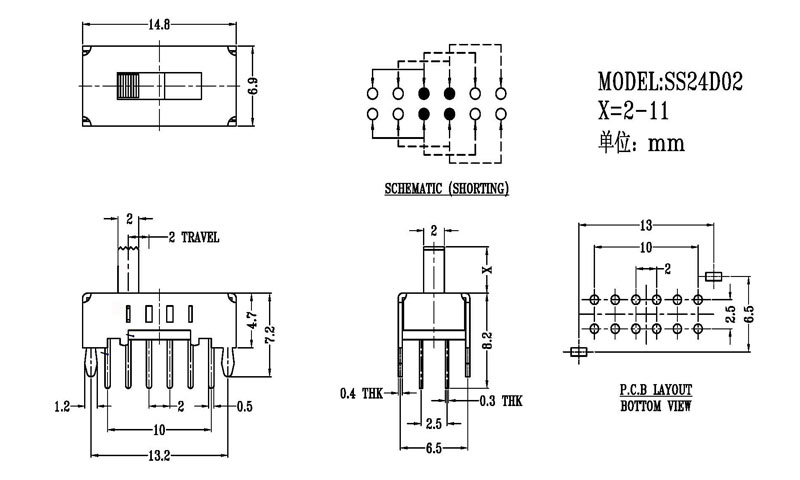 撥動開關主要技術參數/Slide Switch Main data