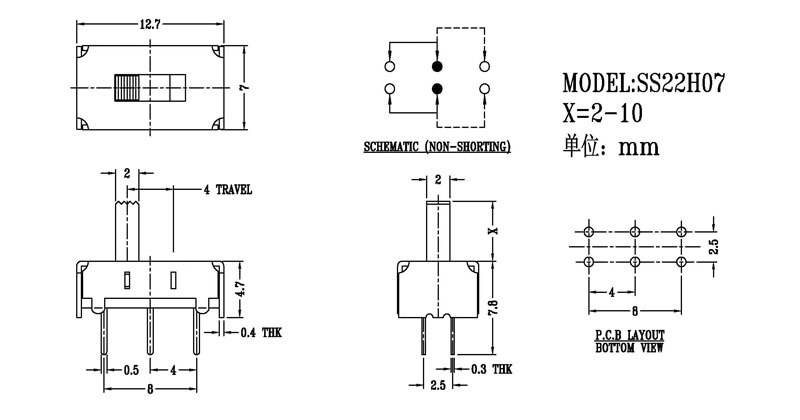 撥動開關(guān)主要技術(shù)參數(shù)/Slide Switch Main data