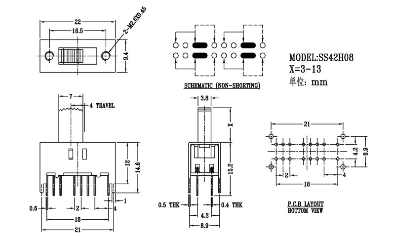 撥動開關主要技術參數/Slide Switch Main data