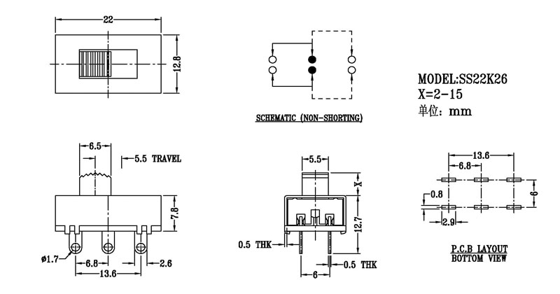 撥動開關(guān)主要技術(shù)參數(shù)/Slide Switch Main data