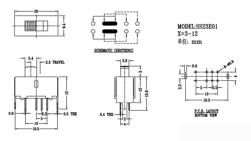 撥動開關(guān)主要技術(shù)參數(shù)/Slide Switch Main data