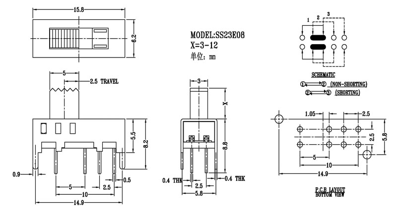 SS-23E08撥動(dòng)開關(guān)